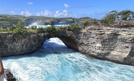 - Xe đưa đoàn đến tham quan Sanur để đáp tàu đi Đảo Nusa Penida – “thiên đường thu nhỏ” ở biển phía Tây của Bali. Hòn đảo đá vôi nổi tiếng với bãi cát trắng muốt và vách đá cao gần 200m sát biển đã tạo nên sự độc đáo, hung vĩ của riêng nơi đây. Đoàn tham quan: