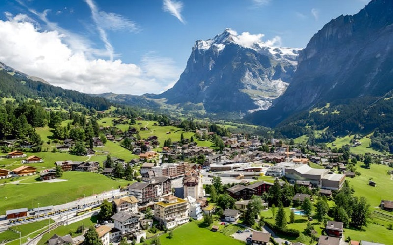 - Thị trấn Grindelwald – khu nghỉ mát trong mơ bên đỉnh Jungfrau – nóc nhà huyền thoại của Châu Âu. Ngôi làng nằm ở độ cao hơn 1.000m so với mực nước biển. Nơi đây được ví như bước ra từ truyện cổ tích với cảnh đẹp thơ mộng, núi non hung vĩ, những ngọn núi tuyết phủ trắng xóa, đồng cỏ xanh mát với những bụi hoa dại… Vì vậy đây cũng là bối cảnh của nhiều bộ phim bom tấn như Star Wars, Jame Bond…