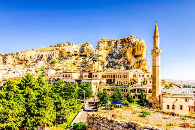 - Lâu đài Uchisar: hiện lên như một pháo đài hùng vĩ được chạm khắc từ đá núi lửa. Đây không chỉ là biểu tượng lịch sử mà còn là nơi lý tưởng để ngắm toàn cảnh các địa điểm du lịch Cappadocia, Thổ Nhĩ Kỳ. Được xây dựng trên đỉnh cao nhất của vùng Uchisar, lâu đài này từng là nơi cư trú và phòng thủ quan trọng trong thời Byzantine.