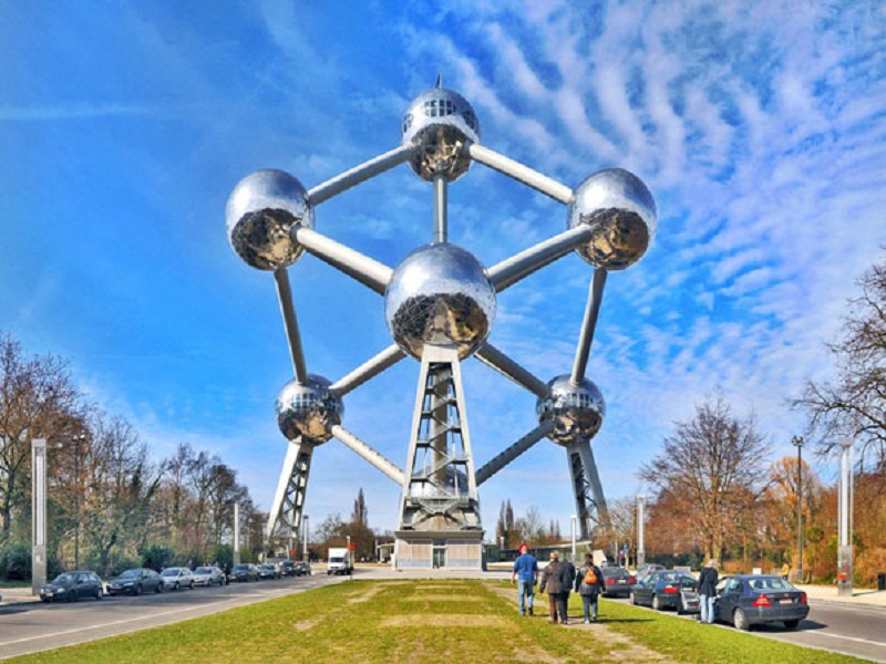 - Tượng đài Atominium – biểu tượng của nước Bỉ. Công trình vĩ đại bằng thép, thiết kế theo mô hình cấu trúc tinh thể của nguyên tố sắt, nhưng có độ phóng đại về kích thước 165 tỷ lần, với chiều cao 102m. Mục đích ban đầu là để phục vụ cho Hội chợ thế giới năm 1958 (Expo’ 58). Tượng đài khổng lồ này được sáng tạo với mong muốn là biểu tượng cho thời đại nguyên tử và sử dụng năng lượng nguyên tử cho mục đích hòa bình.