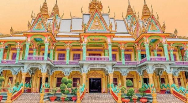 • Khởi hành đi Sóc Trăng, tham quan Chùa Som Rong – ngôi chùa Khmer có kiến trúc tuyệt đẹp. Ngoài ra, tại đây có tượng Phật Thích Ca nhập niết bàn dài 63m, cao 18m đ ược xem là tượng nằm lớn nhất Việt Nam.
