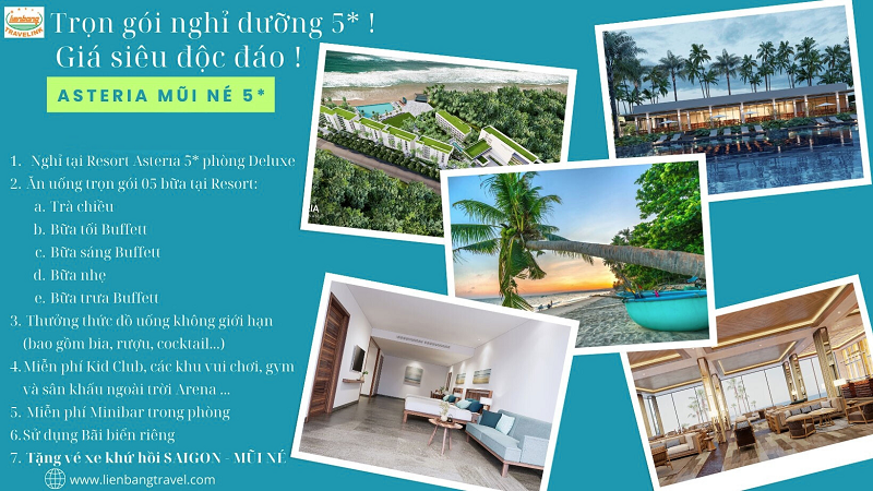 Bạn tìm kiếm những tour du lịch nghỉ dưỡng mới nhất ở Mũi Né Phan Thiết có thiết kế sang chảnh, view đẹp để check-in chụp hình sống ảo cho bộ sưu tập du lịch hay địa điểm nghỉ dưỡng chuẩn 5 sao cho bạn kỳ nghỉ như mơ. Hãy cùng tham khảo tour Du lịch Mũi Né - Trọn gói nghỉ dưỡng 5 sao của Du lịch Liên Bang nhé.