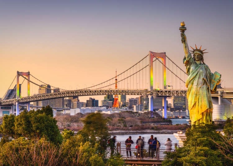 - Các tour còn lại: Vịnh Odaiba: hòn đảo nhân tạo khá lớn của Nhật Bản với chức năng ban đầu là phòng thủ, sau đó dần mở rộng thành cảng biển. Đến nay, đảo Odaiba đã có sự phát triển vượt bậc thành các khu thương mại, giải trí thu hút nhiều khách du lịch. Đến đây, du khách còn có thể chiêm ngưỡng công viên Odaiba Seaside Park với nhiều góc sống ảo cực chất, check in bên cạnh bức tượng Nữ thần Tự Do – món quà là tình cảm của nước Pháp giành cho Nhật Bản.