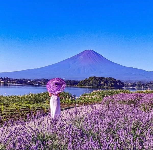 - Công viên Oishi: Điểm đặc biệt thu hút du khách đến với công viên Oishi chính là những cánh đồng hoa rực rỡ trải dài, thay đổi theo mùa. Vào mùa hè, từ tháng 6 đến tháng 7, hoa oải hương (lavender) nở rộ tím biếc, tạo nên một khung cảnh lãng mạn và thơ mộng. Ngoài ra, công viên còn trồng rất nhiều loài hoa khác như tulip, cosmos, cúc và hoa anh đào, mang đến một bức tranh thiên nhiên sống động quanh năm. Đặc biệt, từ công viên, du khách có thể chiêm ngưỡng toàn cảnh núi Phú Sĩ phản chiếu trên mặt hồ Kawaguchi, tạo nên khung cảnh hoàn hảo để chụp ảnh và lưu giữ những khoảnh khắc đáng nhớ.