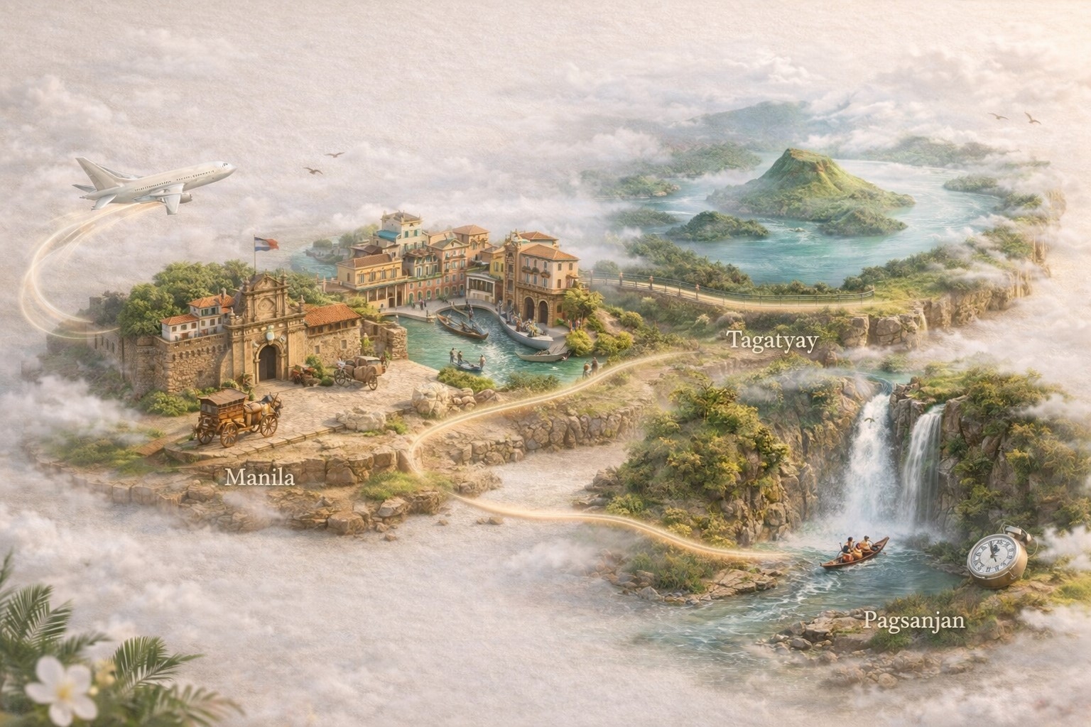 - Nếu Manila là những bản nhạc jazz sôi động và đầy màu sắc lịch sử, thì Tagaytay chính là một nốt lặng đầy thi vị, Quý khách sẽ được đưa lên cao nguyên để hít hà cái không khí se lạnh, nơi tâm hồn được tái thiết lập hoàn toàn và ngắm nhìn một trong những kỳ quan "ảo diệu" nhất thế giới.