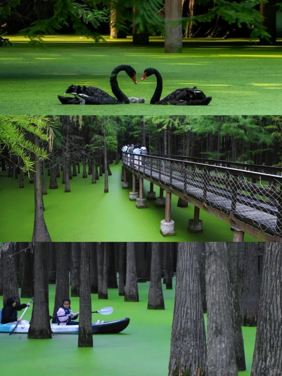 - Đầm lầy Thanh Sơn – “đỉnh lưu” Hàng Châu, xứ sở “Hồ Matcha” cực kì nổi tiếng trên các diễn đàn mạng xã hội, bởi nơi đây không chỉ là một hồ nước, mà là một kiệt tác thiên nhiên mang đậm hơi thở sử thi. Nơi đây sở hữu khu rừng thủy tùng trên nước lớn nhất miền Nam Trung Hoa, tạo nên một khung cảnh mờ ảo như bước ra từ những trang truyện cổ tích. Vào mùa hè và mùa thu, mặt hồ bị phủ kín bởi một lớp bèo tấm xanh rì, đặc quánh như một tách matcha khổng lồ. Quý khách có thể lựa chọn chèo thuyền (chi phí tự túc) xuyên qua những rặng cây, mái chèo rẽ nước tạo nên những vệt loang lổ trên "lớp kem" matcha ấy, một cảm giác thư thái và mãn nhãn đến tột cùng.