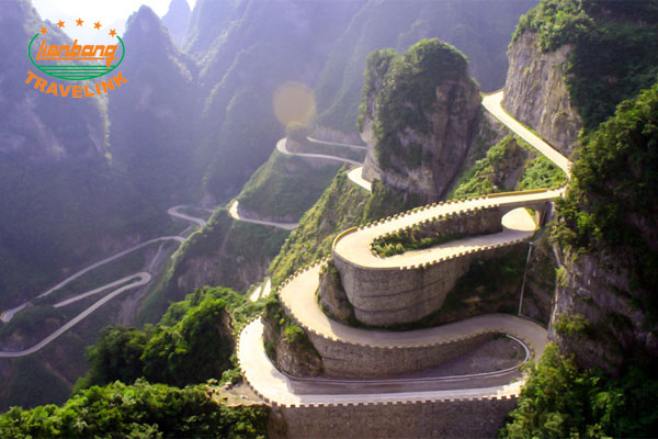 Núi Thiên Môn Sơn là một ngọn núi cao và hùng vĩ, nơi có Cổng Trời, một kỳ quan thiên nhiên nổi tiếng của Trung Quốc. Để chinh phục đỉnh núi này, bạn sẽ phải vượt qua con đường đầy thách thức và mạo hiểm. Đó là con đèo 99 khúc cua dài 11km, cao 1300m so với mực nước biển. Con đường này được coi là một trong những con đường nguy hiểm nhất thế giới vì độ dốc và những khúc cua hiểm trở, yêu cầu tay lái phải cực kỳ tinh tế và khéo léo. Đèo 99 khúc cua được khởi công từ năm 1998 và hoàn thành vào năm 2006, sau 8 năm xây dựng vất vả và gian nan.