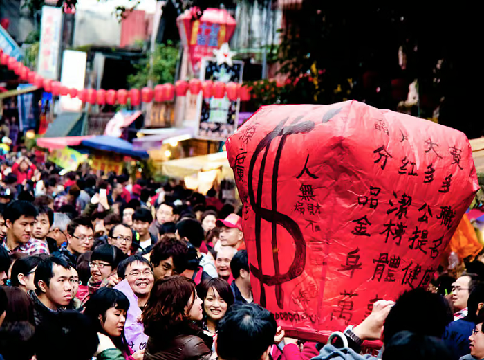 Thả đèn trời Shifen dưới tán hoa anh đào